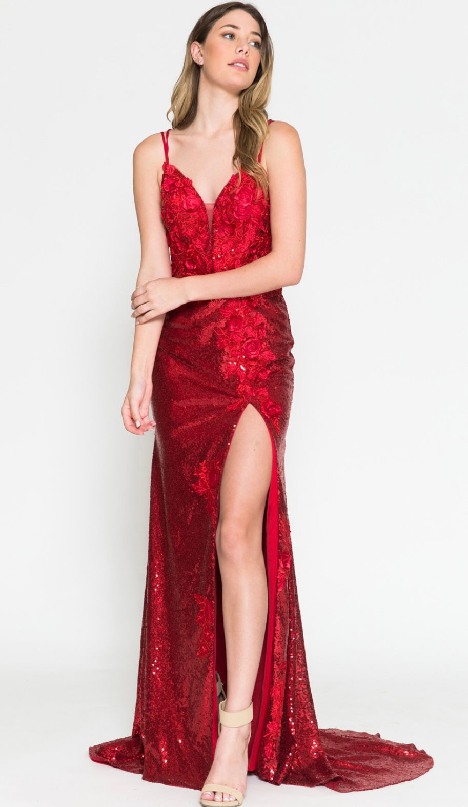 Fitted Sequin & Floral Embellishment Long Formal Dress & Prom Dress