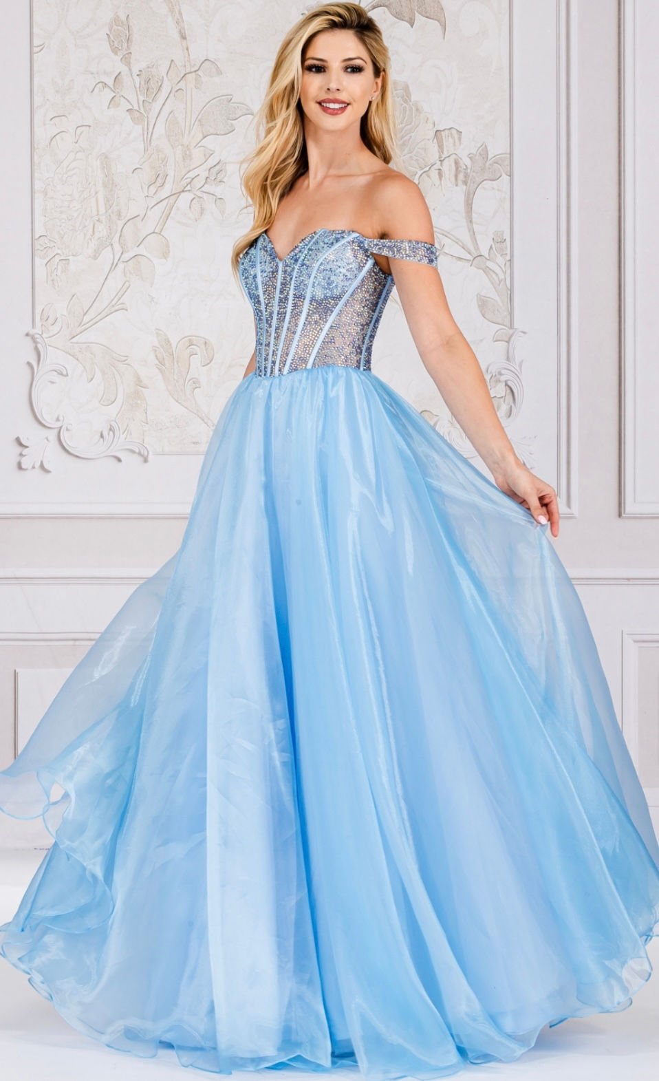 Off The Shoulder Corset Bodice Long Formal Dress & Prom Dress