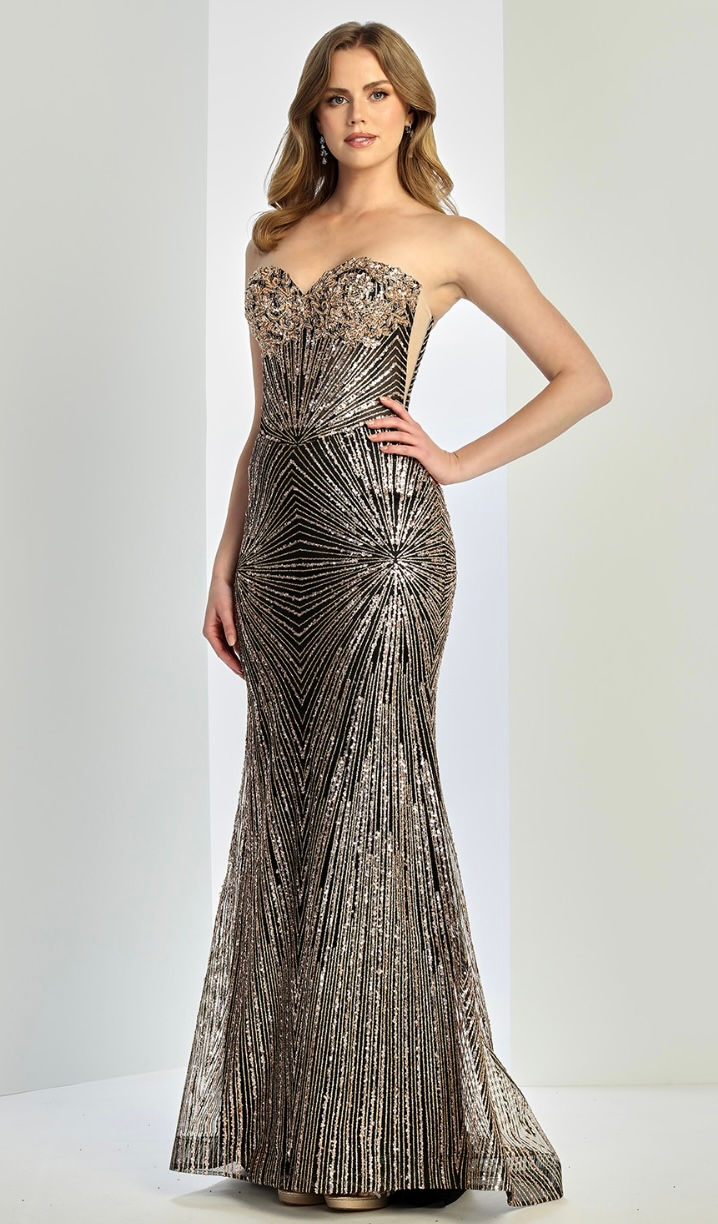 Strapless Fitted Sequin Embellished Long Formal Dress & Prom Dress