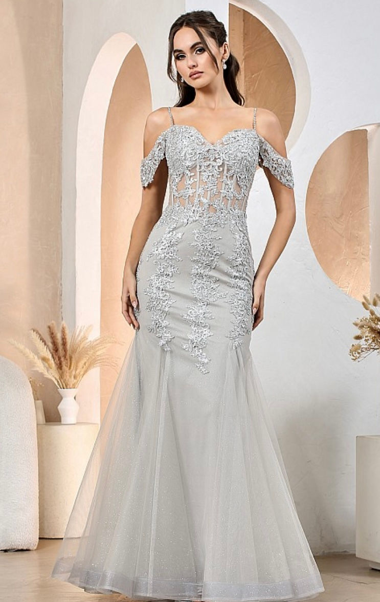 Fitted Glitter With Corset Bodice Long Formal Dress & Prom Dress